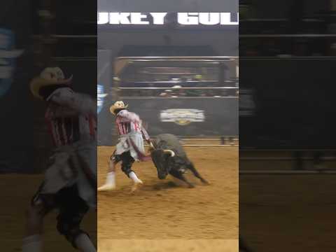Jacorey Golden pulls a hamstring in the Head-to-Head round at the @ultimatebullfighters 2024 World Finals at Cowtown Coliseum in Fort Worth, TX. #rodeo #fortworth #pbr
